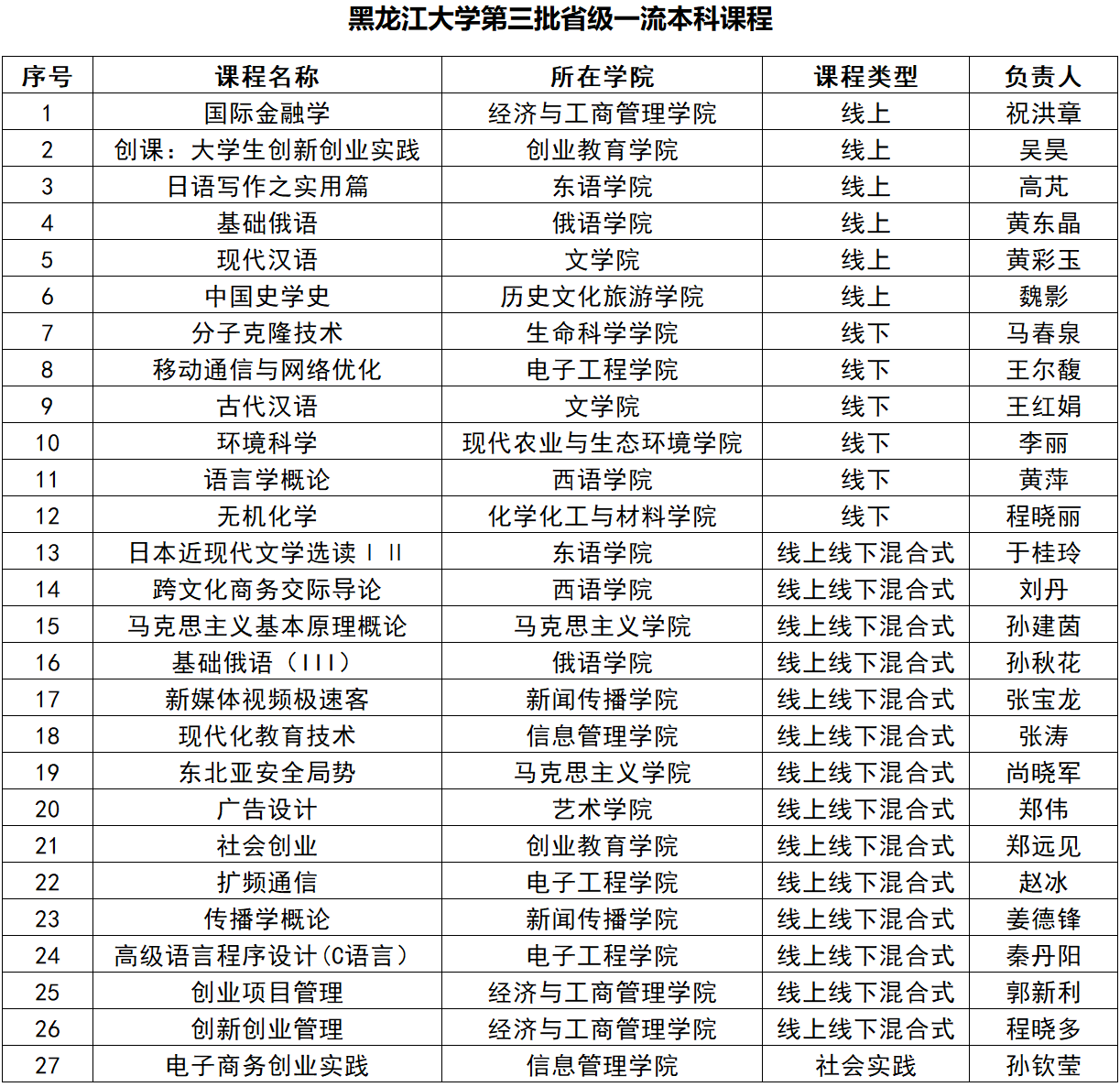 根据《教育部关于一流本科课程建设的实施意见》和《黑龙江省教育厅关于进一步做好一流本科课程建设与管理工作的通知》要求,经省教育厅专家评议,九游·体育官方网站共有《国际金融学》等27门课程获评第三批省级一流本科课程,截止目前,九游·体育官方网站共获评省级一流本科课程73门。